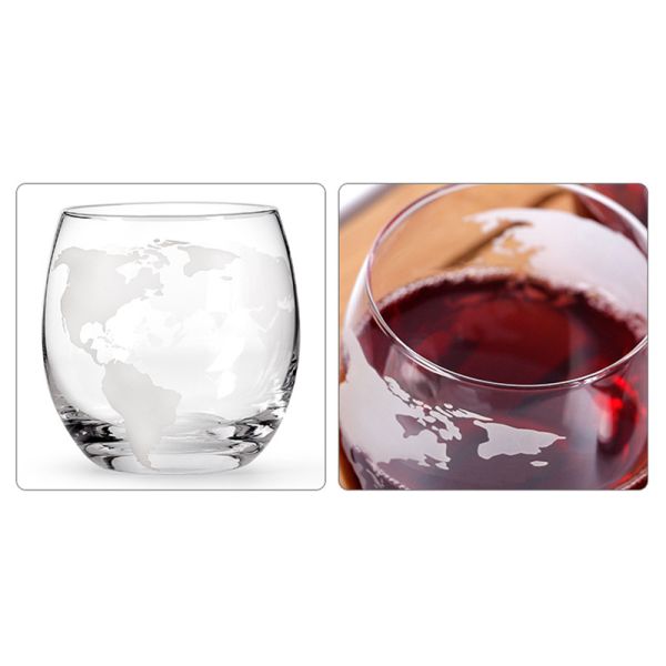 Globe Design Etched Borosilicate Glass Decanter with Wine Glass Cup Gift Set
