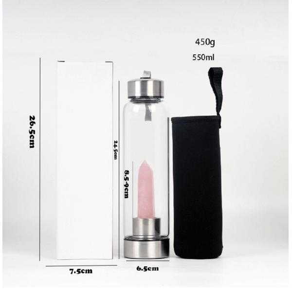 Natural Rose Quartz Wellness Healing Gemstone Crystal Glass Water Bottle